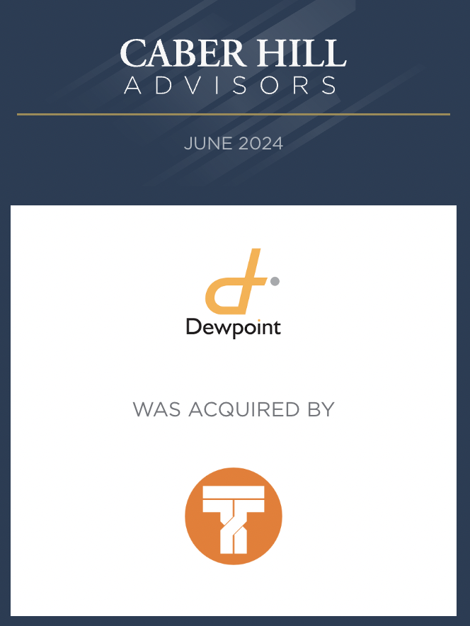 “Our whole team is grateful for the work Jordan and his team did to help us with the successful sale of Dewpoint,” said Mike Gilmore, President & CEO of The 4100 Group. “From the initial meeting until the close and through the ups and downs of the process the Caber Hill team were pros and at every turn did what they said they would do. My team appreciated the clear game plan and timeline they set for us and came to rely on their responsiveness and attention to detail to help ensure a successful conclusion for all parties involved. We would recommend Jordan and his team to anyone going through a transaction in the future and appreciated the consistency of their work.”
