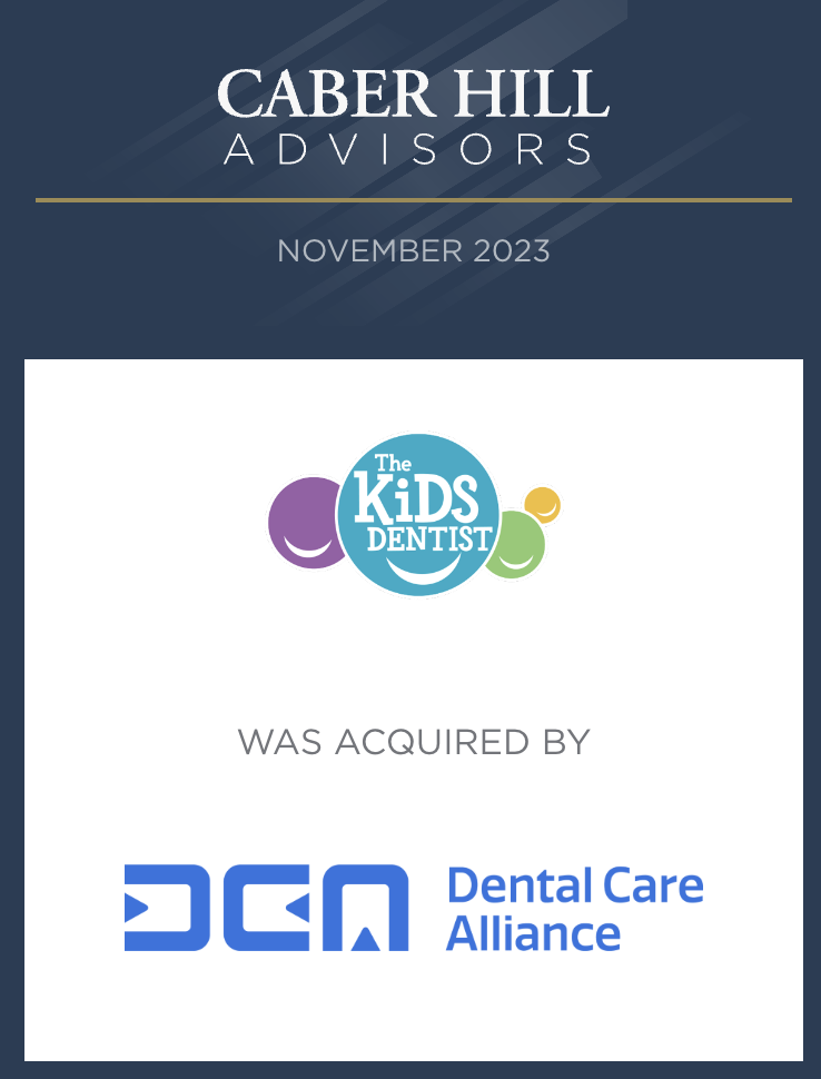 Caber Hill Advisors is proud to share that we advised The Kids Dentist on its sale to Dental Care Alliance which currently supports over 400 allied practices and 900 dentists across 23 states.