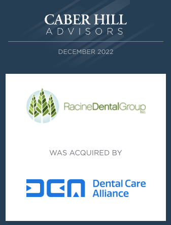Caber Hill Advisors is proud to announce that we advised Racine Dental Group in its partnership with Dental Care Alliance, which currently supports over 390 allied practices and 900 dentists across 22 states.